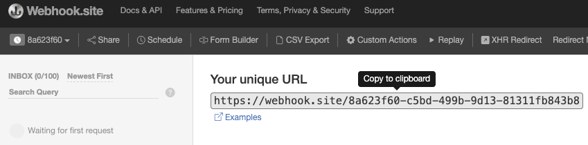 - Then use the url presented in the [Your Unique URL field] as the webhookURL for your request: