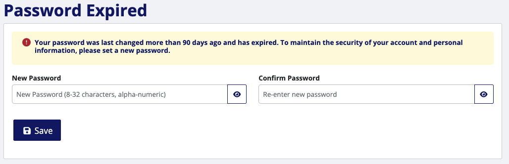 - Once the password expires, the user will be prompted to create a new password before accessing their account.